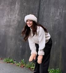 Shehnaaz Gill keeps it stylish and warm in a white sweatshirt, paired with a furry winter hat and black trousers. Known for her effortless, cozy aesthetic, this look is a go-to inspiration for anyone wanting comfort without compromising style.