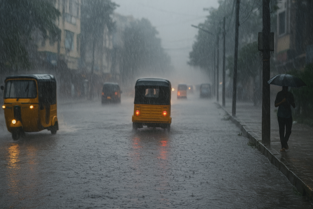 Chennai and several coastal districts of Tamil Nadu are bracing for another spell of heavy to extremely heavy rainfall as Cyclone Ditwah continues to move parallel to the Tamil Nadu–Puducherry coastline. The cyclone, which intensified through Sunday, has already triggered sharp showers, flooded low-lying areas, and caused three rain-related deaths across the state.