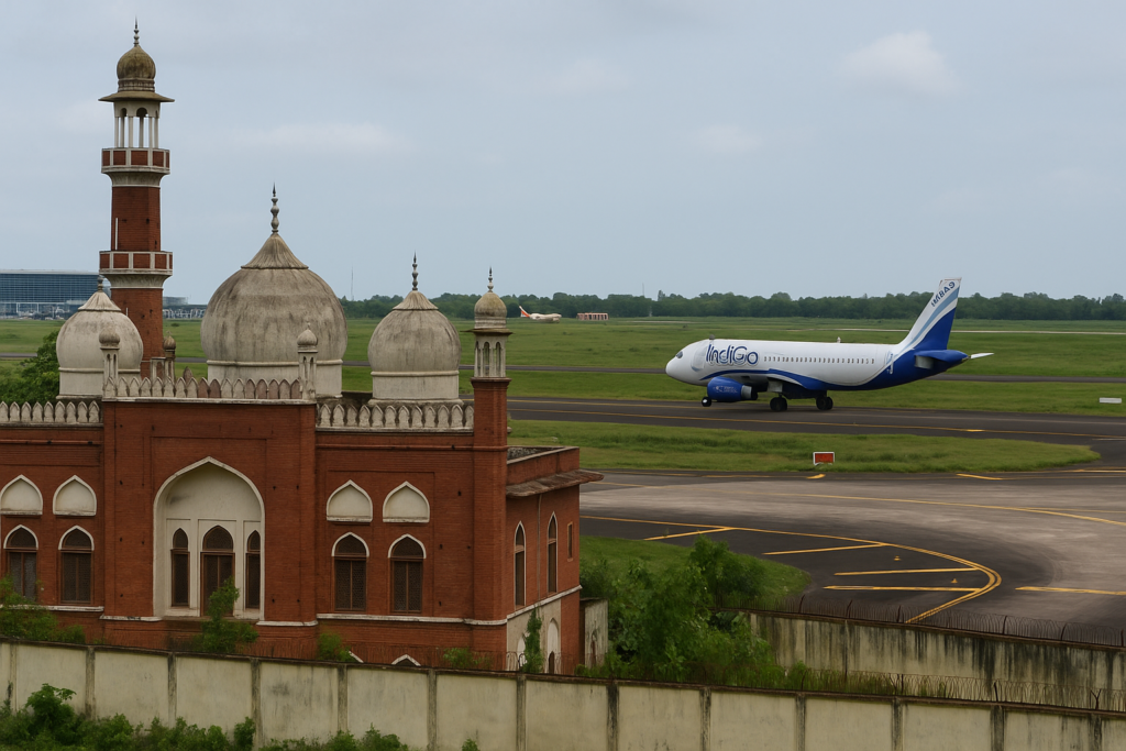As political tensions rise in West Bengal, airport expansion plans — including new terminal and runway upgrades — are again under discussion. The presence of the mosque restricts development and complicates emergency runway use.