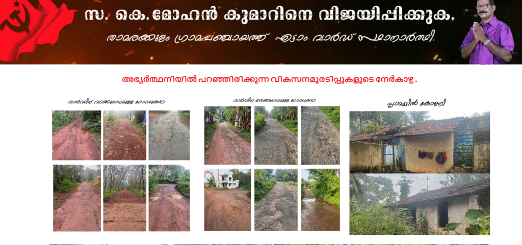 As the election draws closer, voters in Thamarakulam Grama Panchayath have shown significant interest in Mohanan Kumar’s development-oriented narrative. While some await more concrete project details, many appreciate his promise of accessibility and coordinated governance.