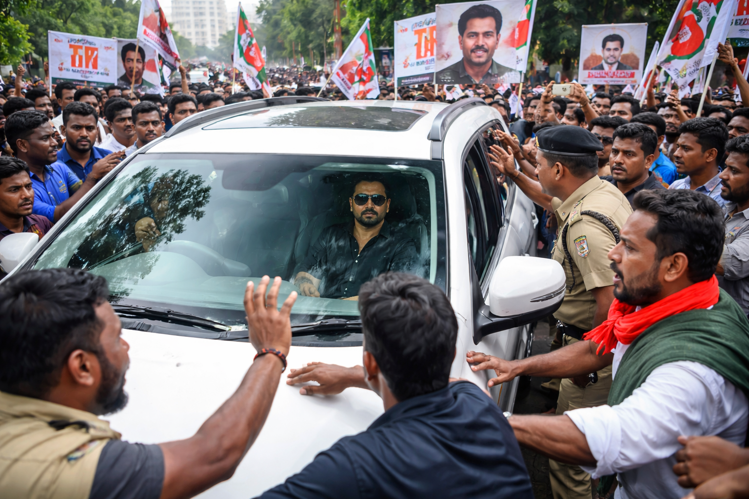 Actor-turned-politician Vijay faced an unexpected protest on Tuesday when members