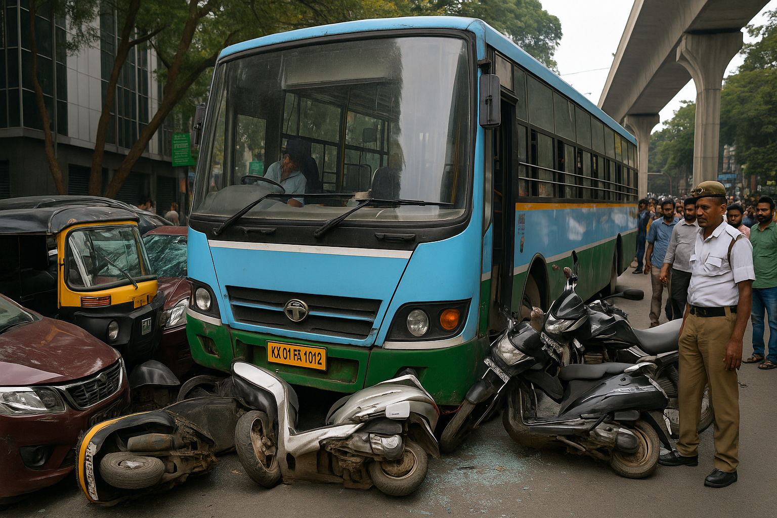 Bengaluru BMTC Bus Rams 9 Vehicles After Driver Suffers Seizure Near Chinnaswamy Stadium