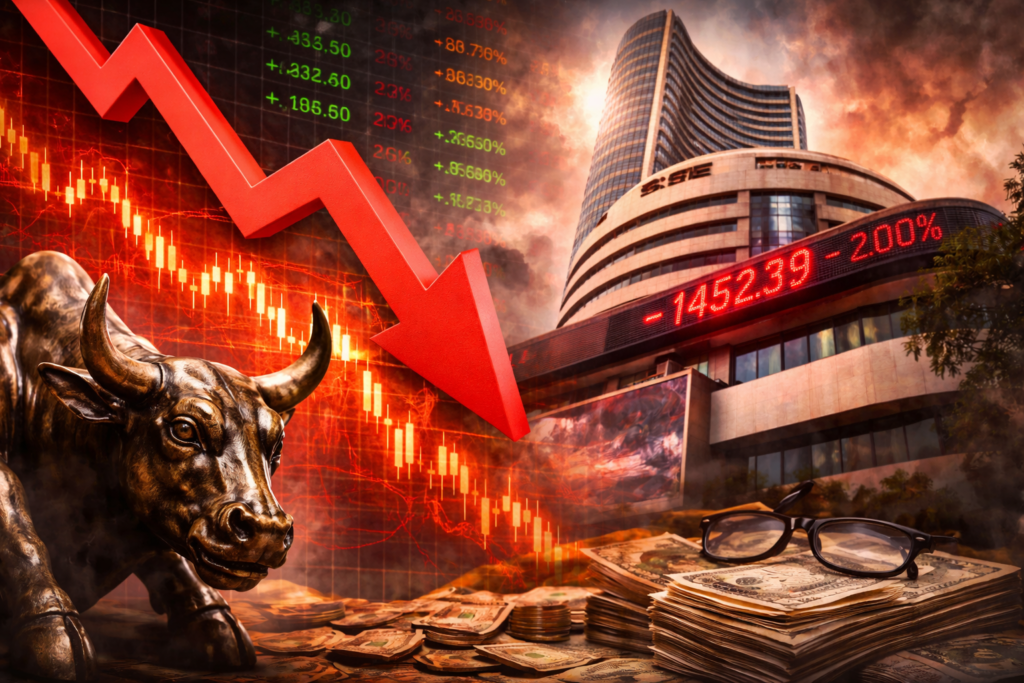 Indian equity markets witnessed a sharp downturn on Tuesday, with benchmark indices plunging nearly 2% amid widespread selling across sectors and continued foreign investor outflows.